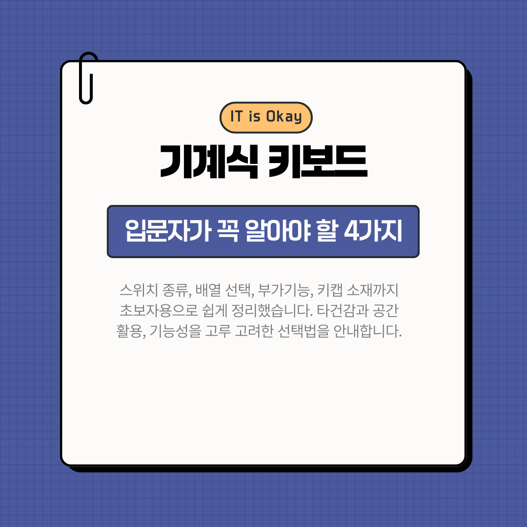 기계식 키보드는 단순한 입력 도구가 아닙니다. 타건감, 소리, 감성까지 챙겨야 하는 *취향템*이에요.