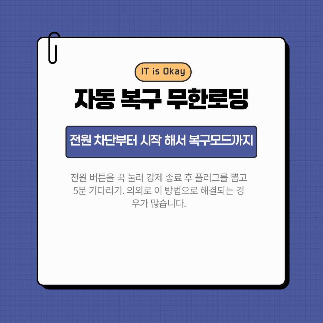 컴퓨터 켜자마자 '자동 복구 준비 중'만 보이면요, 사람 진짜 멘붕 옵니다. 😵💫 저도 예전에 그랬거든요. 근데 알고 보면 해결법 은근 간단해요. 오늘은 이 악명 높은 무한 로딩, 시원하게 뚫어봅시다!