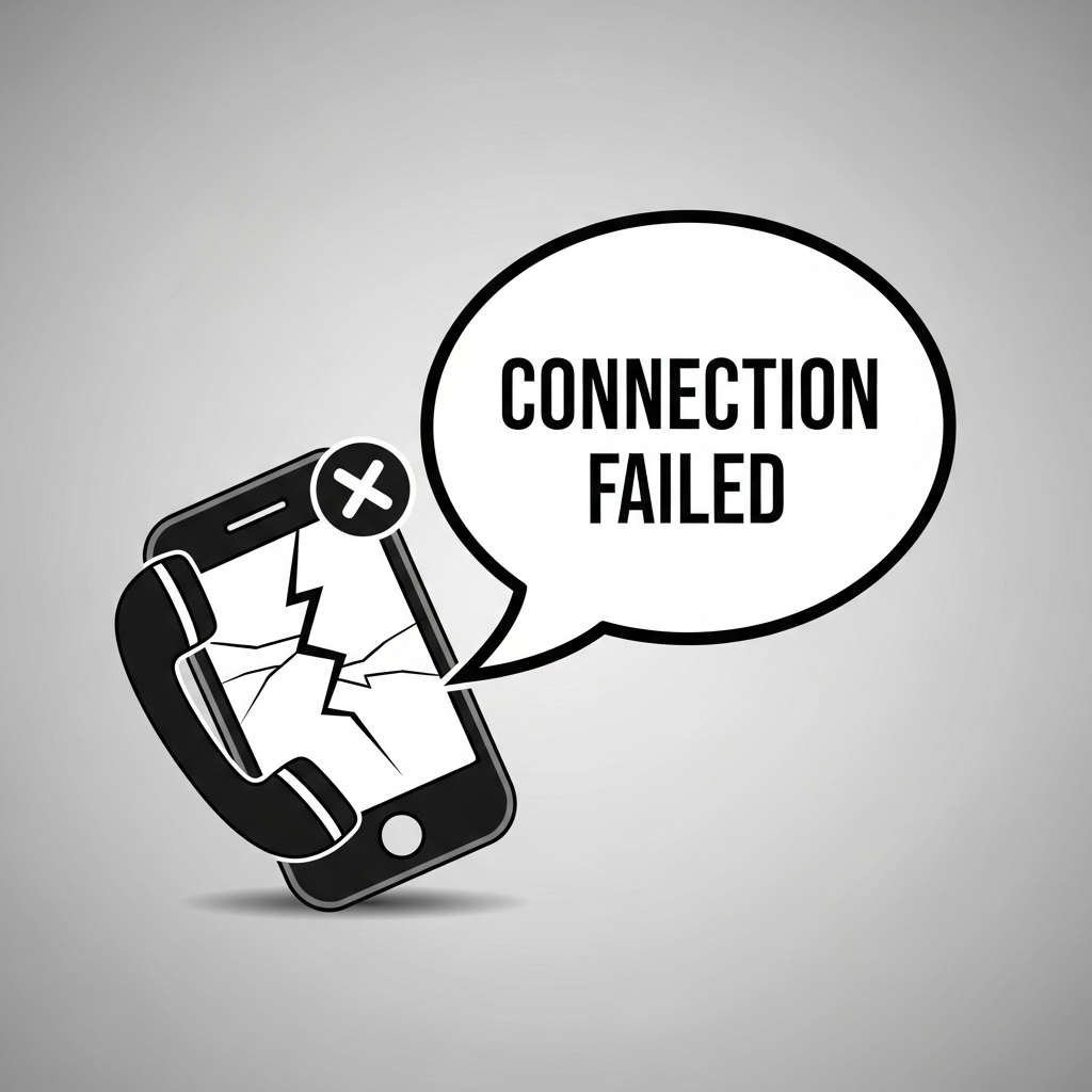 깨진 전화기 아이콘과 그 옆에 '연결 실패' 말풍선이 있는 이미지