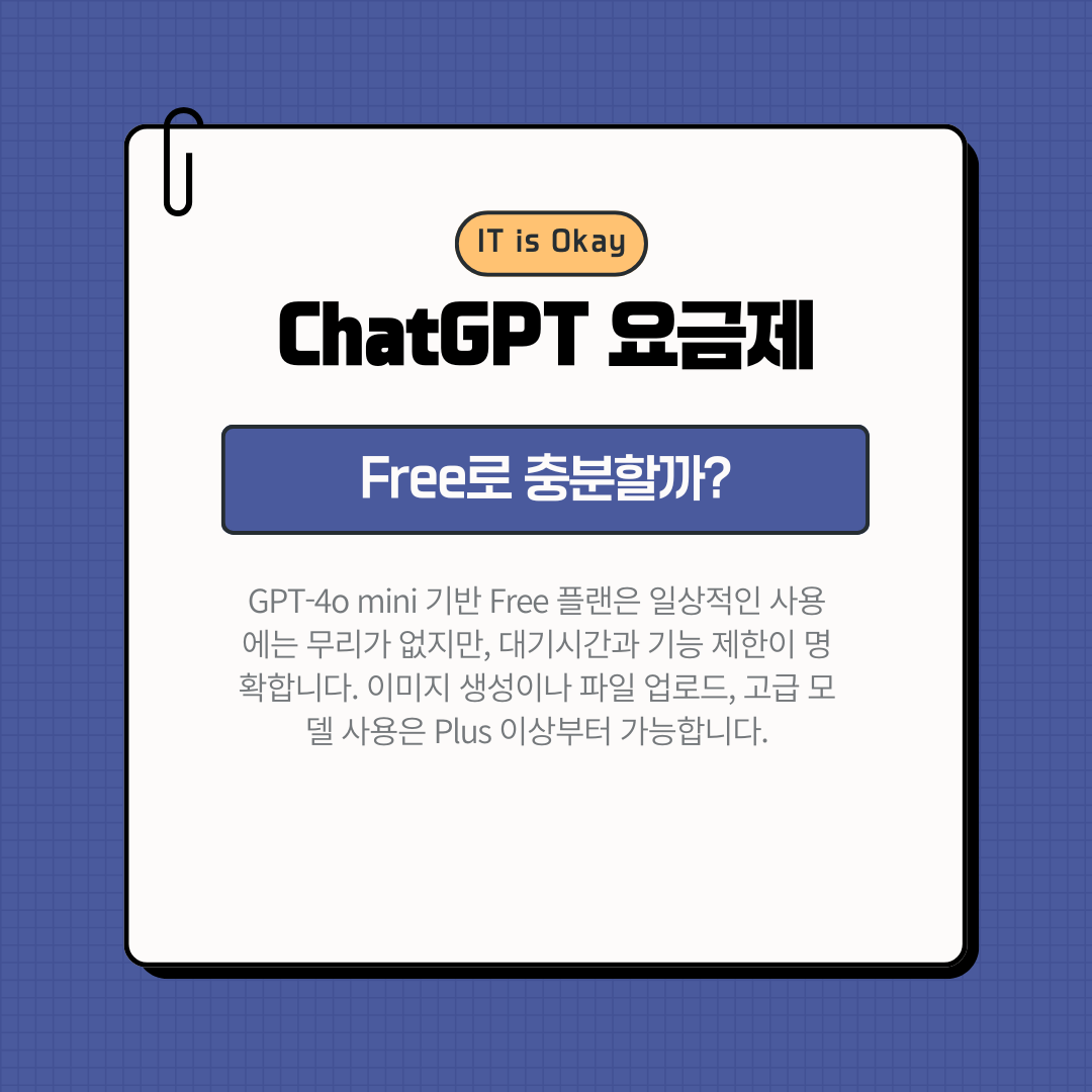 | Free | $0 | GPT‑4o mini | 8K | 일상적 질문, 가벼운 사용 | 학생, 호기심 테스트 |