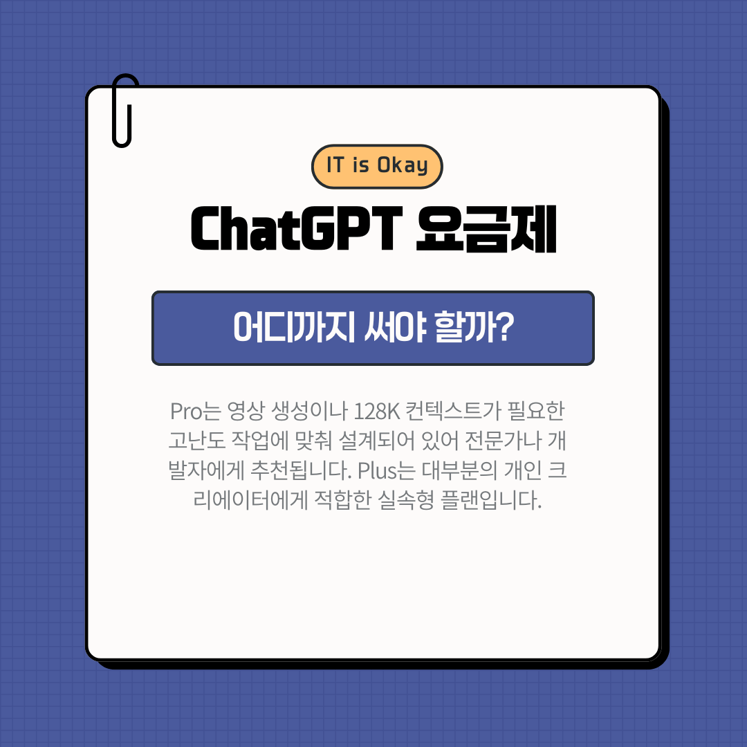 | Pro | $200 | GPT‑4o 무제한 + o1 pro | 128K | Sora 영상, 지연 거의 없음 | 개발자, 데이터 분석가 |